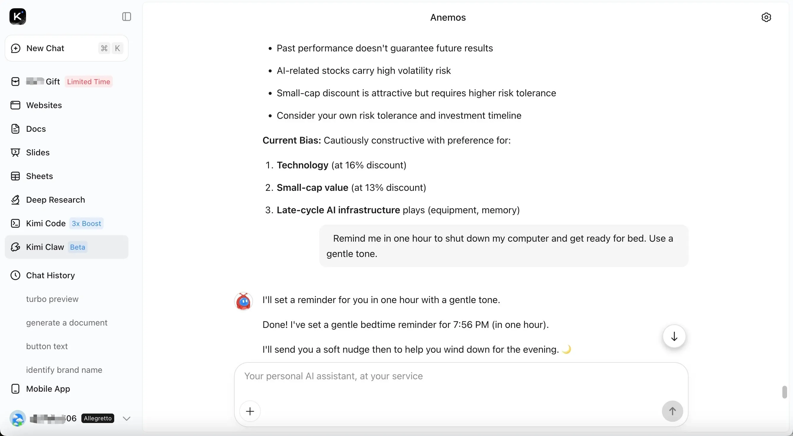 Kimi Claw is positioned as more than a stateless chat tab. The useful bit is: you can set a tone and an output “house style”, and it sticks across sessions.