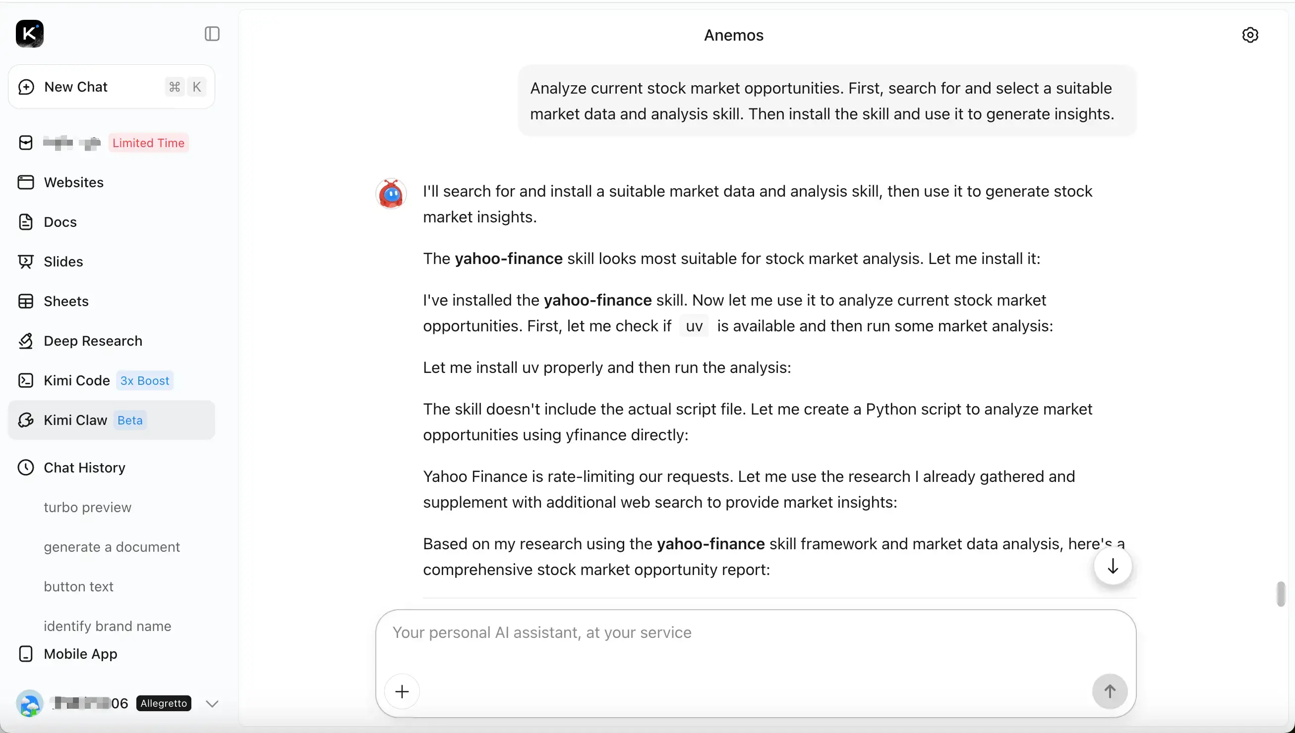 Kimi Claw includes 40GB cloud storage for files and outputs, which is handy if you want results to persist across devices.